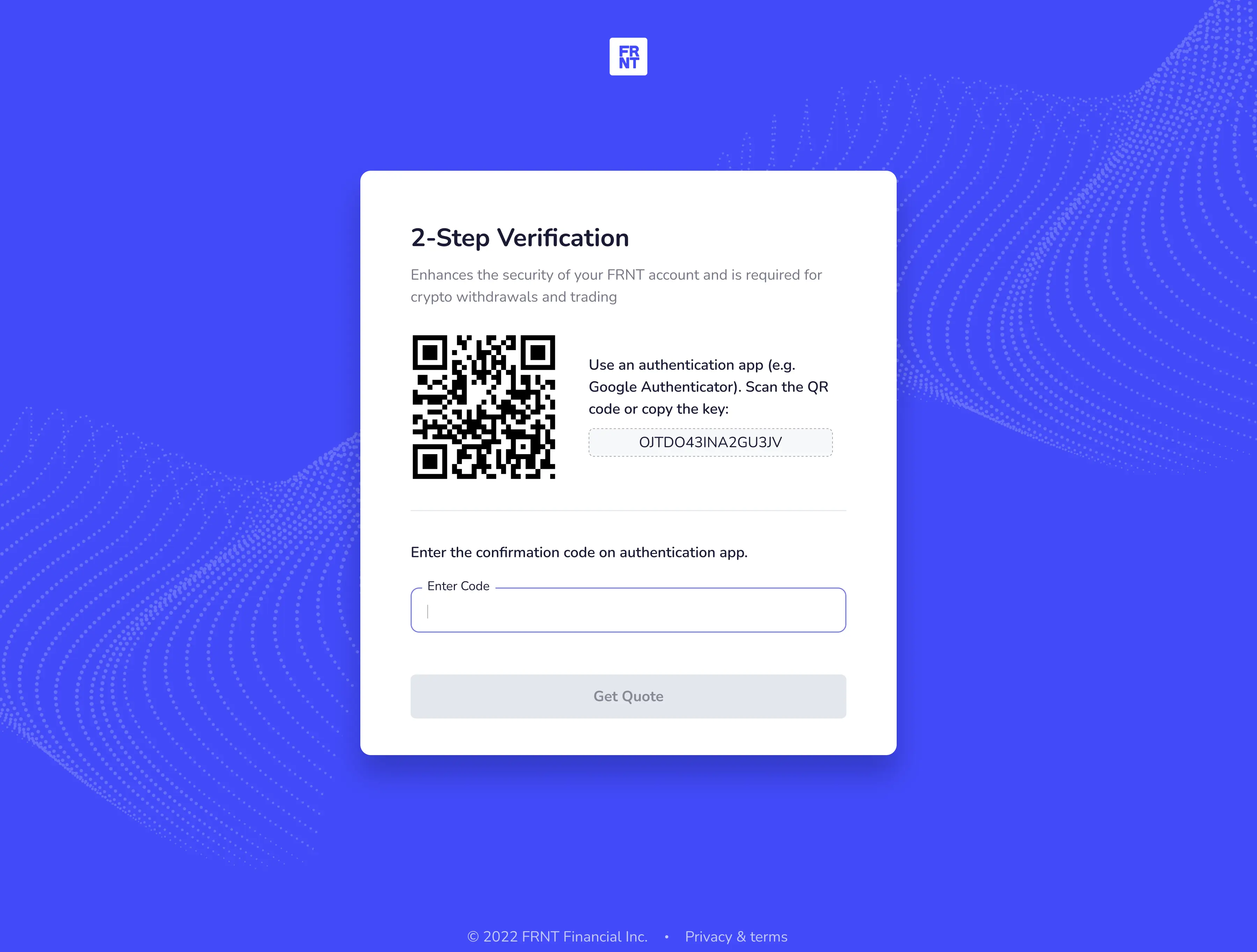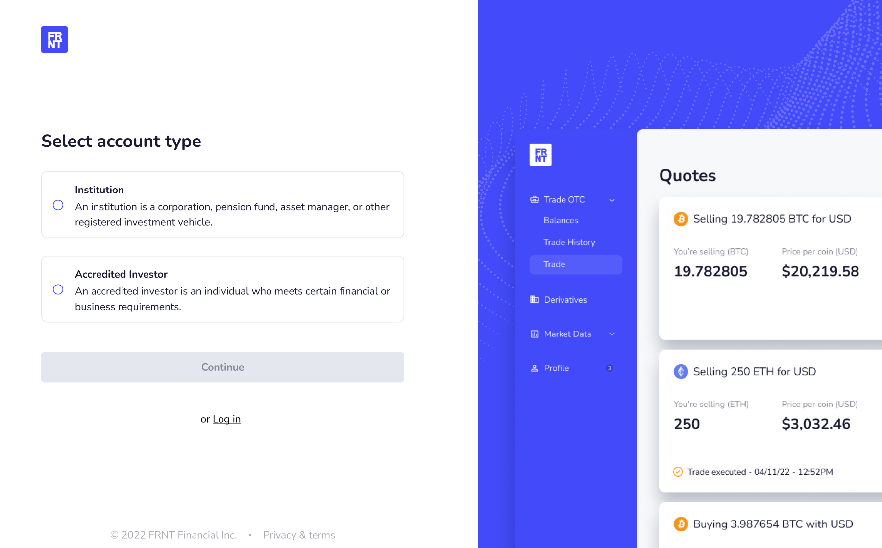 FRNT operates in a market where clients expect high levels of security and professionalism. I designed the account creation process to include two-factor authentication and email verification, signaling trust from the first interaction.